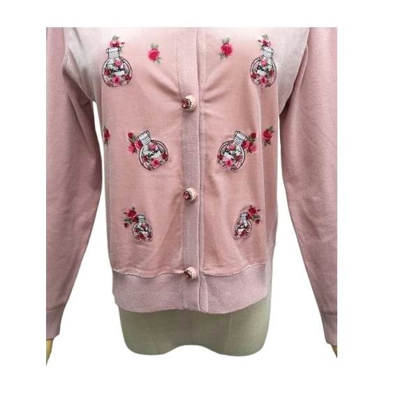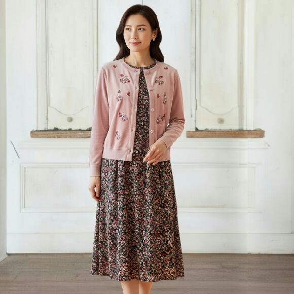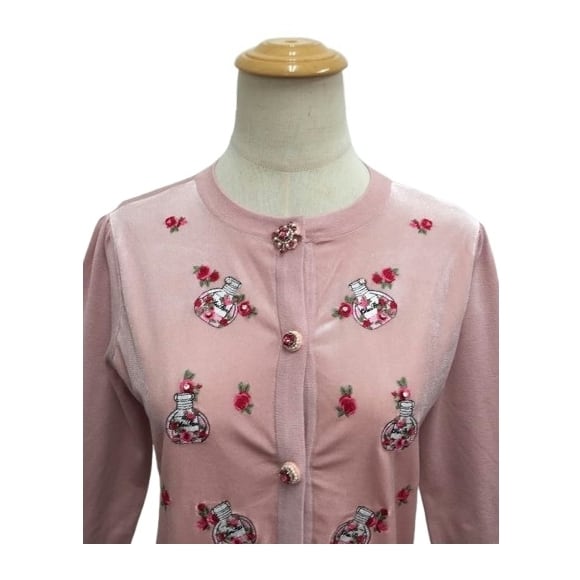 スーパービューティー カーディガン 香水瓶刺しゅう ベロア素材 ニット 2521015 ピンク 2025年秋冬 オーラボー Super Beauty 大人かわいい服 大人スタイル キレイメ レディース アパレル 女性 M L LL 30代 40代 50代 60代