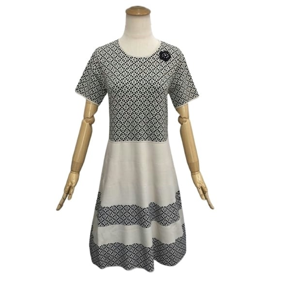 スーパービューティー ワンピース ジャガード編み 配色使い ニットワンピ 2511021 ベージュ 2025年春夏 オーラボー 大人かわいい服 大人スタイル キレイメ Super Beauty レディース アパレル 女性 M L LL 30代 40代 50代 60代