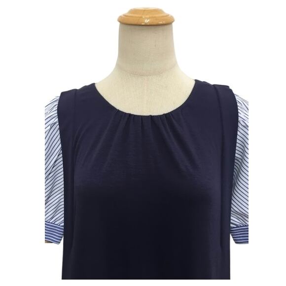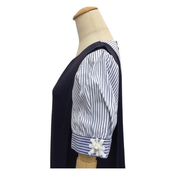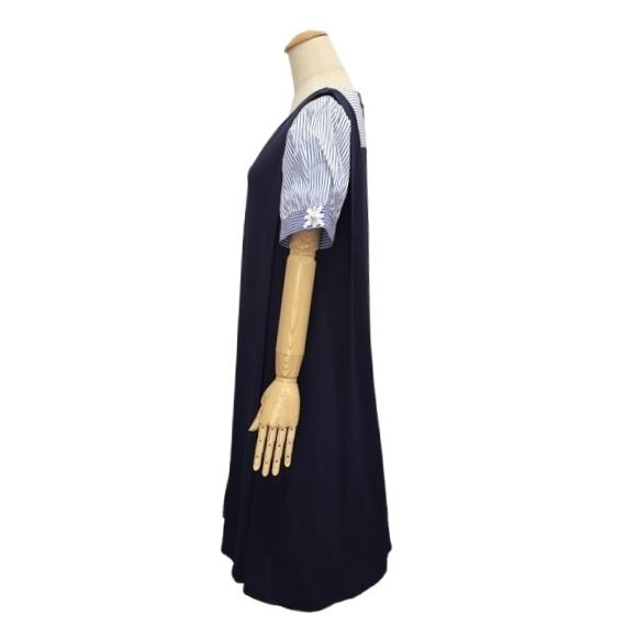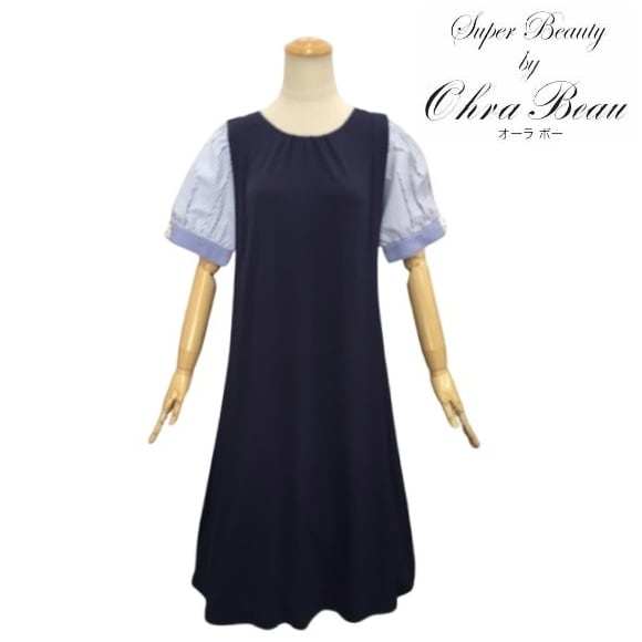 スーパービューティー ワンピース 袖ストライプ ジャージ素材 2516049 ネイビー 2025年春夏 オーラボー Super Beauty 大人かわいい服 大人スタイル キレイメ レディース アパレル 女性 M L LL 30代 40代 50代 60代