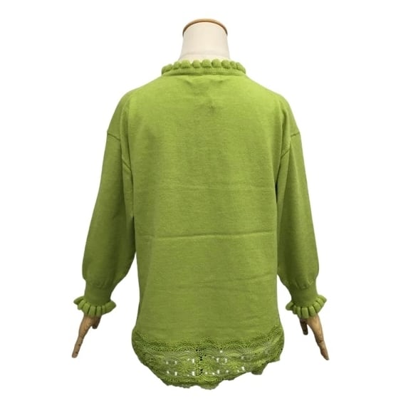 スーパービューティー セーター フリル 衿ぐり 裾レース 2421028 グリーン 2024年秋冬 オーラボー Super Beauty 大人かわいい服 大人スタイル キレイメ レディース アパレル 女性 M L LL 30代 40代 50代 60代