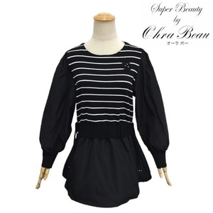 スーパービューティー ニット チュニック ボーダー タフタ素材 2511017 ブラック 2025年春夏 オーラボー 大人かわいい服 大人スタイル キレイメ Super Beauty レディース アパレル 女性 M L LL 30代 40代 50代 60代
