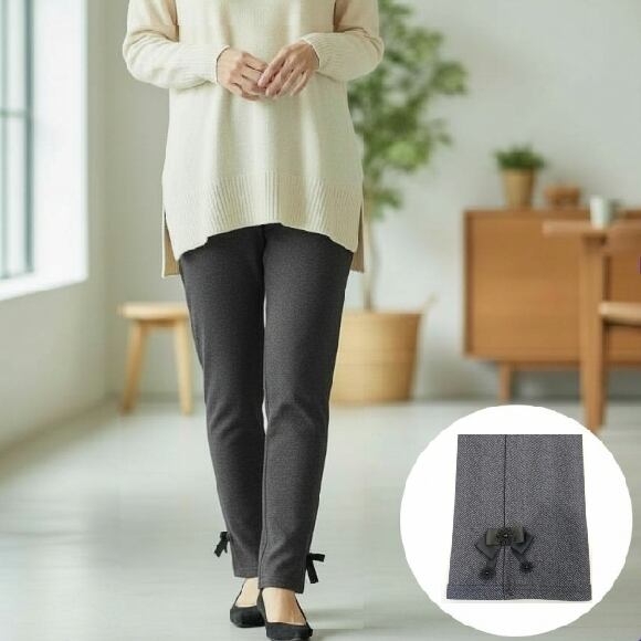 スーパービューティー パンツ サイドリボン ヘリンボーン 裏起毛 2524008 グレー 2025年秋冬 オーラボー Super Beauty 大人かわいい服 大人スタイル キレイメ レディース アパレル 女性 M L LL 30代 40代 50代 60代