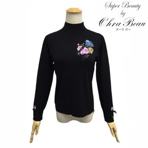スーパービューティー セーター 花刺しゅう入り ハイネック 2421011 ブラック 2024年秋冬 オーラボー Super Beauty 大人かわいい服 大人スタイル キレイメ レディース アパレル 女性 M L LL 30代 40代 50代 60代