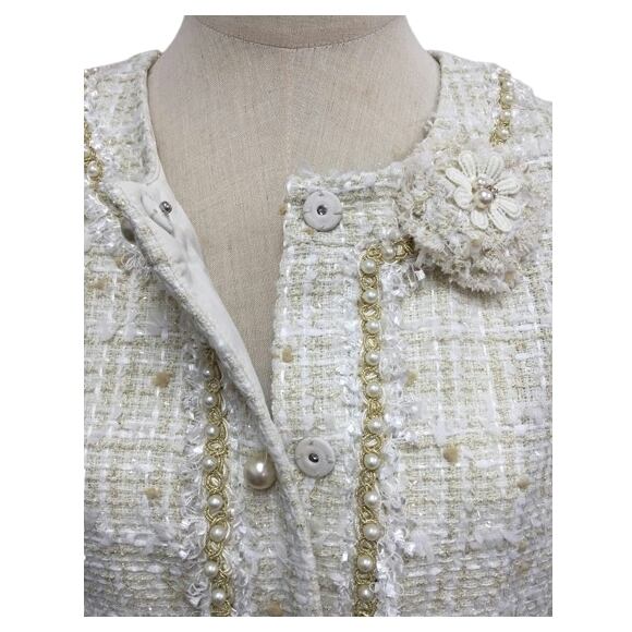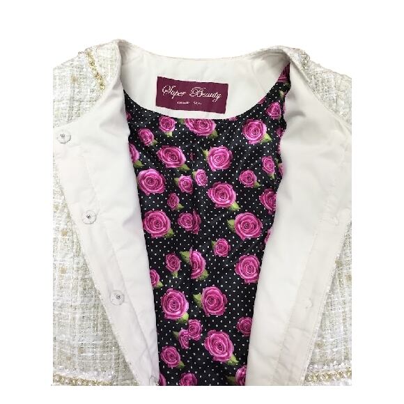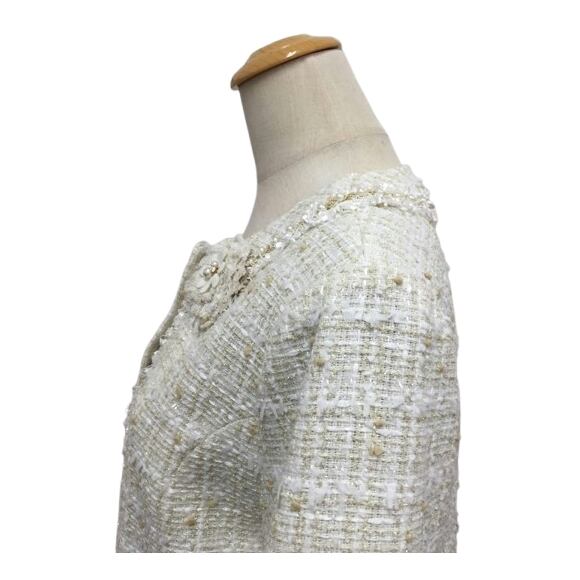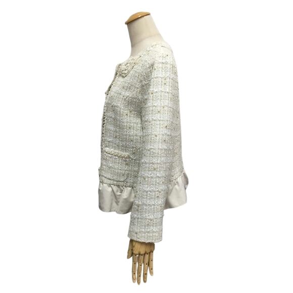 スーパービューティー ジャケット 裾フリル ツイード 2427023 ベージュ 2024年秋冬 オーラボー Super Beauty 大人かわいい服 大人スタイル キレイメ レディース アパレル 女性 M L LL 30代 40代 50代 60代
