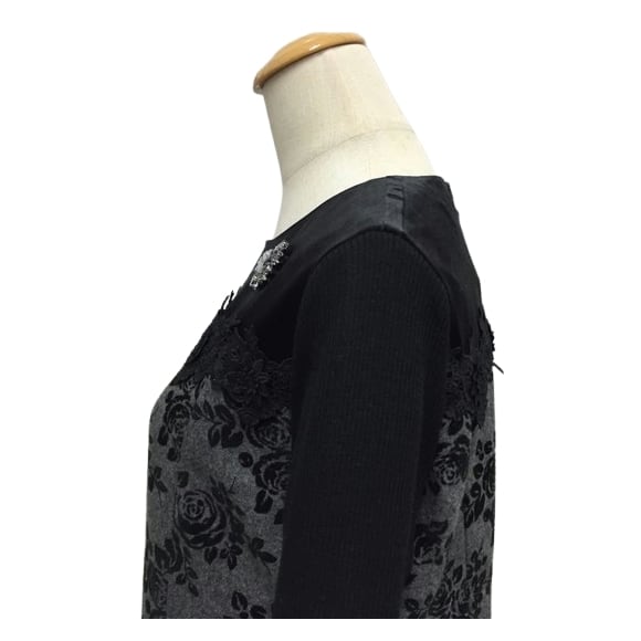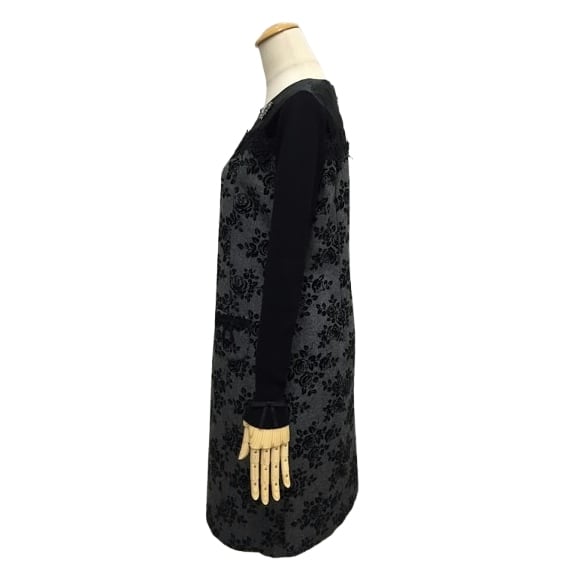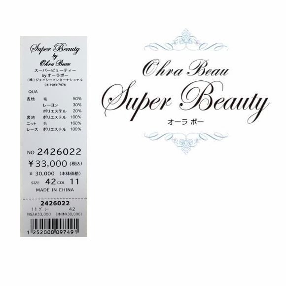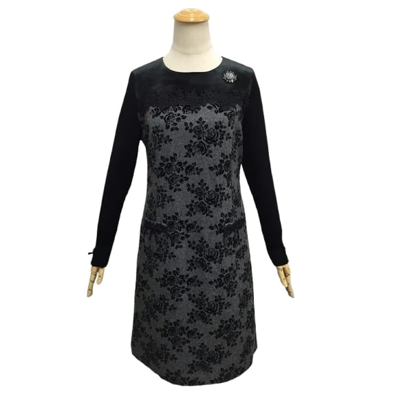 スーパービューティー ワンピース フロッキー ベロア 切替 2426022 グレー 2024年秋冬 オーラボー Super Beauty 大人かわいい服 大人スタイル キレイメ レディース アパレル 女性 M L LL 30代 40代 50代 60代