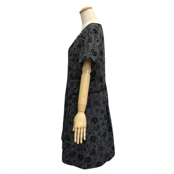 スーパービューティー ワンピース フロッキープリント 半袖ワンピ 前開き 2526020 チャコール 2025年秋冬 オーラボー Super Beauty 大人かわいい服 大人スタイル キレイメ レディース アパレル 女性 M L LL 30代 40代 50代 60代