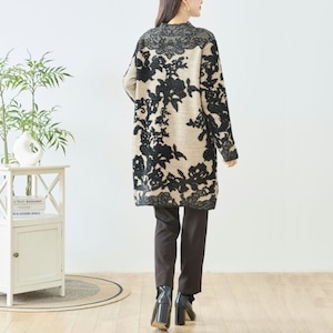 首元から裾まで流れるようにデザインされた花柄は、