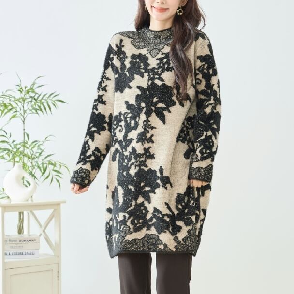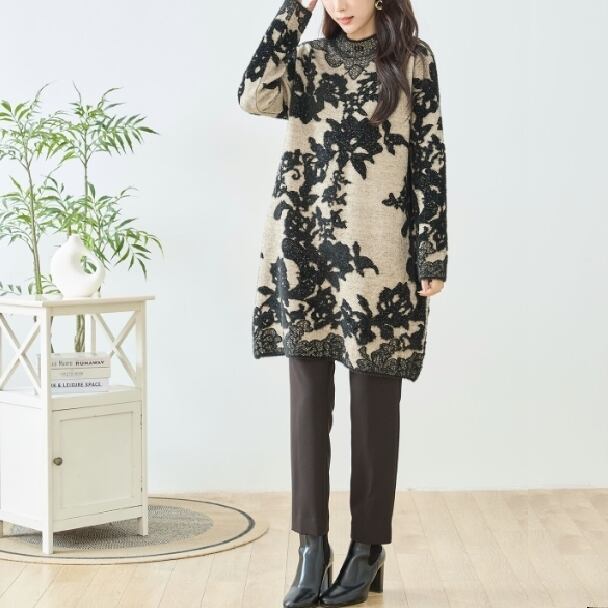 ワンピース フラワーレース ジャカード ニットワンピース N15-205 TRUBE M L フリー 大人可愛い ミセス fmsd キレイメ 普段着 おしゃれ着 デイリーファッション 大人スタイル 婦人服 可愛い服 30代 40代 50代 60代 洋服 レディース