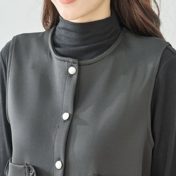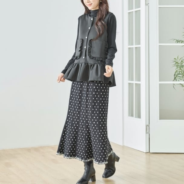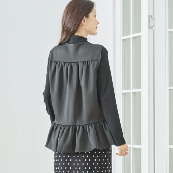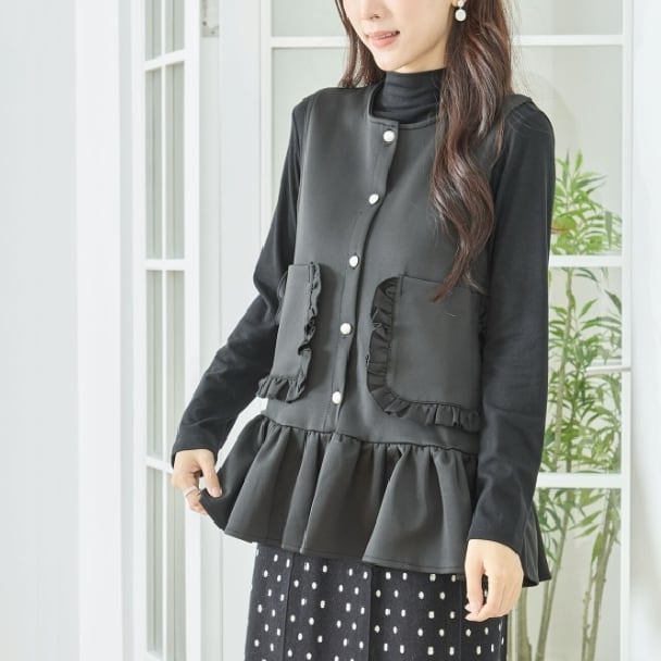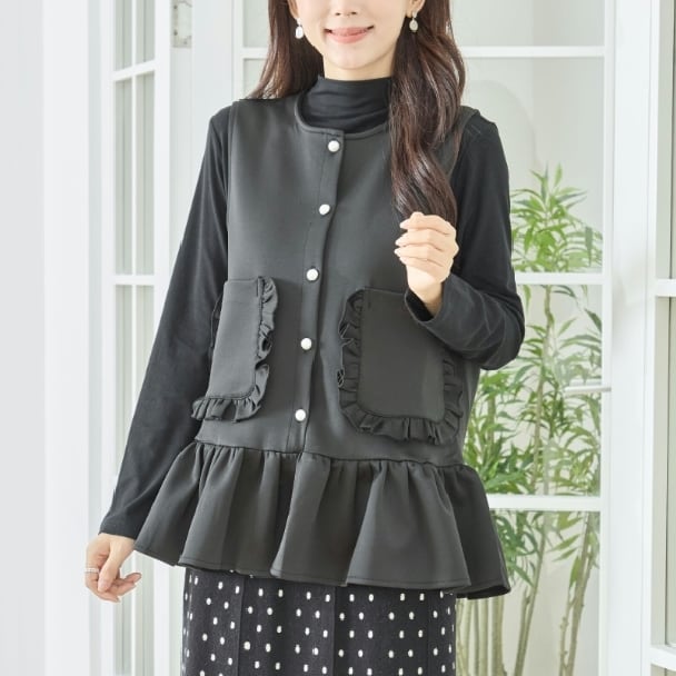 ベスト フリルデザイン プラムベストフリルポケット付き N32-094 amie studio M L フリー 大人可愛い ミセス fmsd 上品ミセスファッション 長袖カットソー風ベスト 体型カバー 大人スタイル 婦人服 レディース