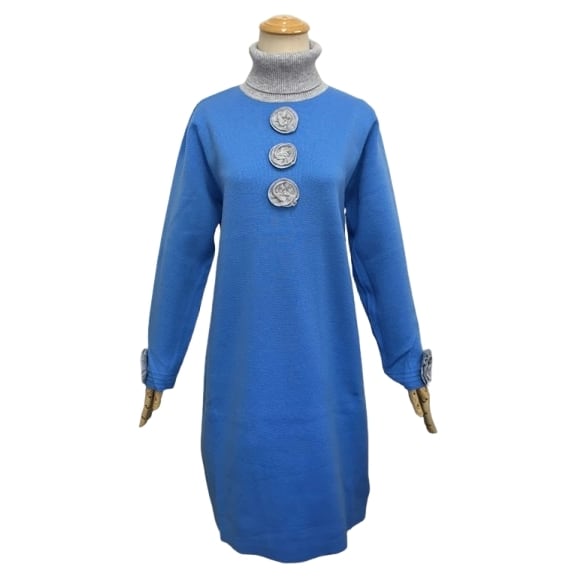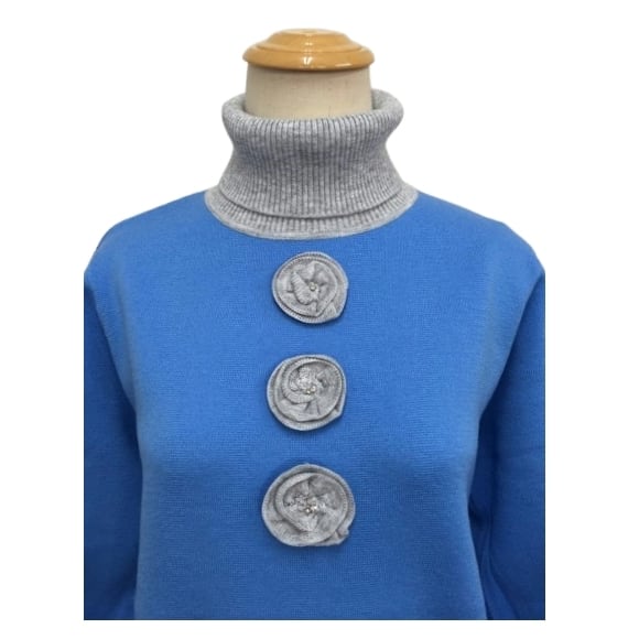 【アウトレットセール50%OFF】スーパービューティー ニットワンピース 花モチーフ タートルネック 2421032 ブルー 2024年秋冬 オーラボー 大人かわいい服 ミセス レディース キレイメ アパレル 女性 30代 40代 50代 60代 大人スタイル