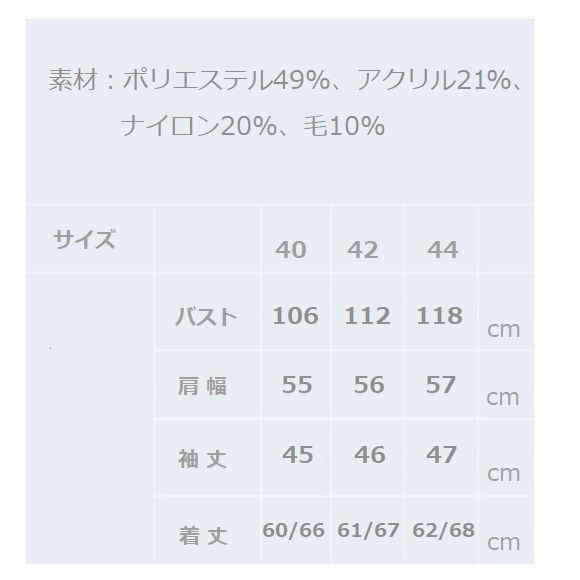 素材:ポリエステル49%、アクリル21%、ナイロン20%、毛10%