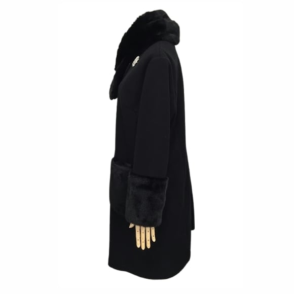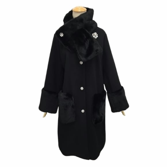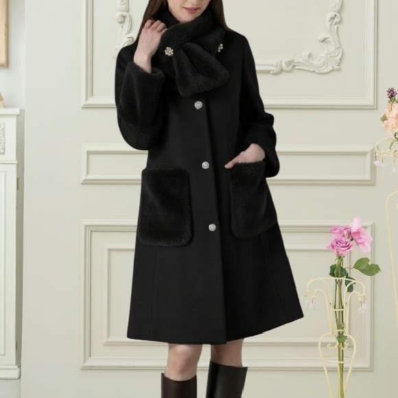 スーパービューティー ノーカラーコート ファーストール付 2528002 ブラック 2025年秋冬 オーラボー Super Beauty 大人かわいい服 大人スタイル キレイメ レディース アパレル 女性 M L LL 30代 40代 50代 60代