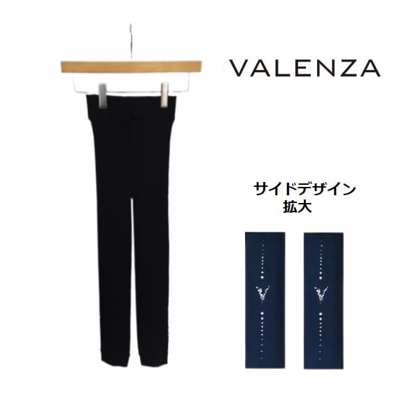 VALENZA バレンザボー 裏シャギー レギンス 5144404 レディース ミセス 冬 あったか ストレッチ 美脚 黒 体にフィット 動きやすい ラインストーン サイドデザイン 裏起毛 らくちんウエスト