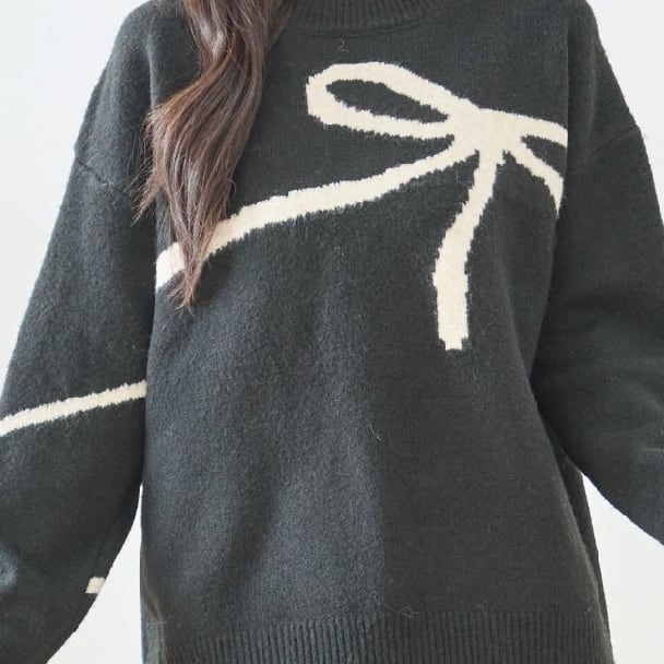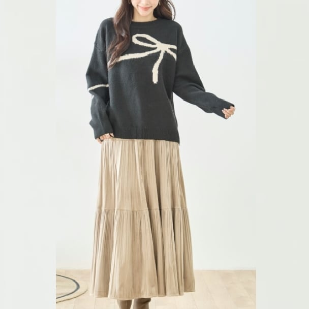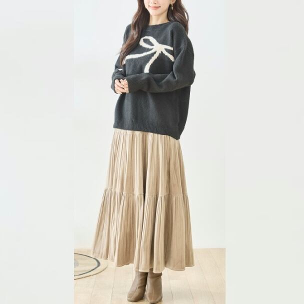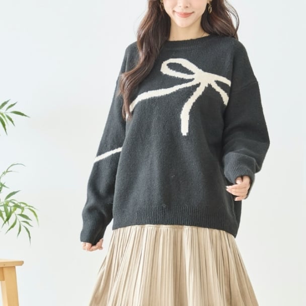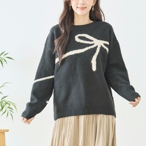 ニット リボン柄 ニット セーター N15-176 TRUBE M L fmsd ゆったり ふんわり 暖かい 体型カバー 長袖 トップス プルオーバー ミセス カジュアル キレイメ 普段着 おしゃれ着 デイリーファッション