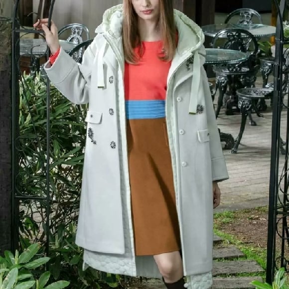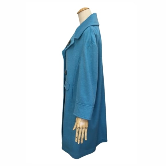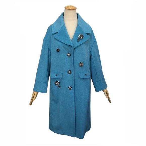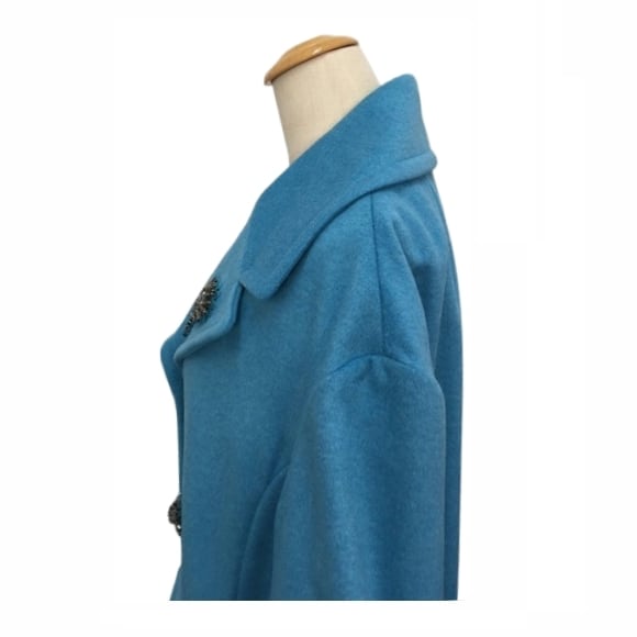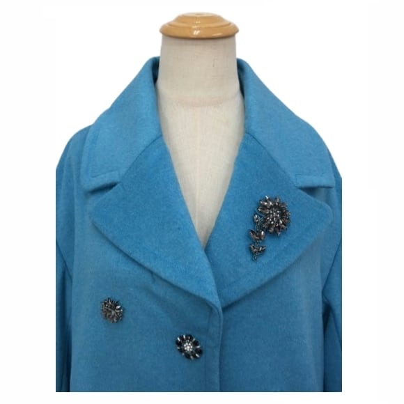 スーパービューティー コート ウール混 ビジュー付き 飾りポケット付き 2428001 ブルー 2024年秋冬 オーラボー Super Beauty ロング丈 レディース エレガント 上品 大人可愛い 秋冬 アウター