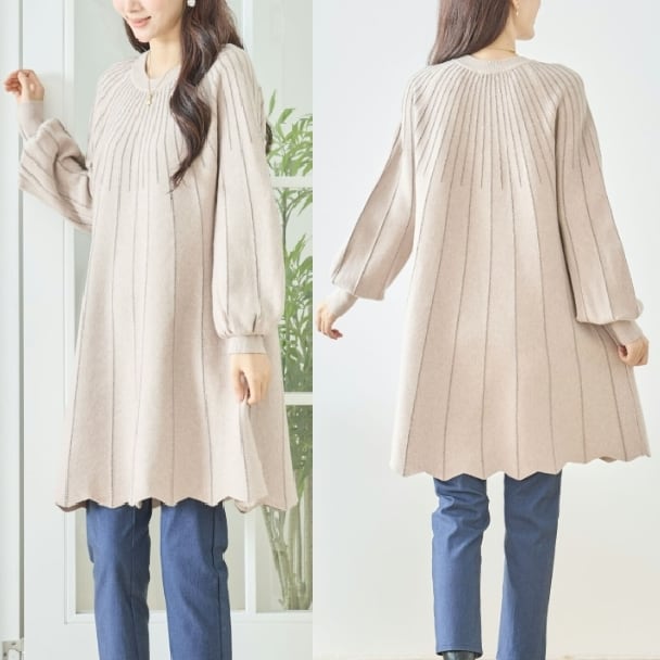 TRUBE ミセス チュニック ワンピース リブラインフレア ニット N12-863 M L 体型カバー ゆったり 上品 きれいめ 長袖 ミセス ファッション大人可愛い fmsd 大人スタイル 婦人服 可愛い服 30代 40代 50代 60代