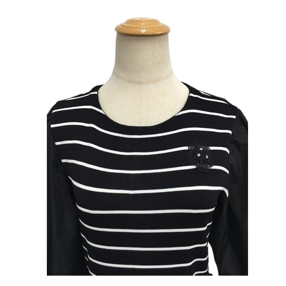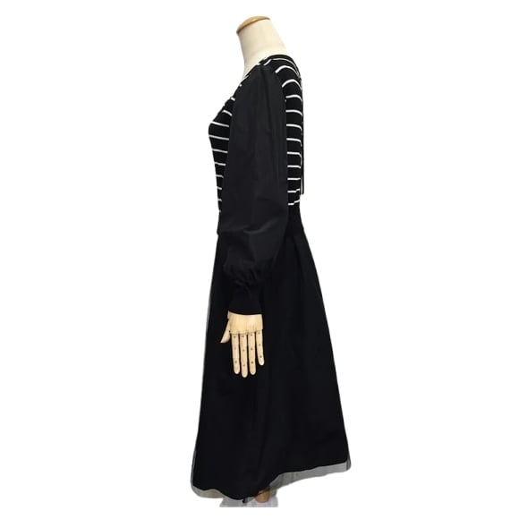 スーパービューティー ワンピース ボーダー×タフタ切替 チュール使い フレアシルエット 2511016 ミセス エレガント オーラボー 2025春夏 オーラボー Super Beauty M L LL 30代 40代 50代 60代
