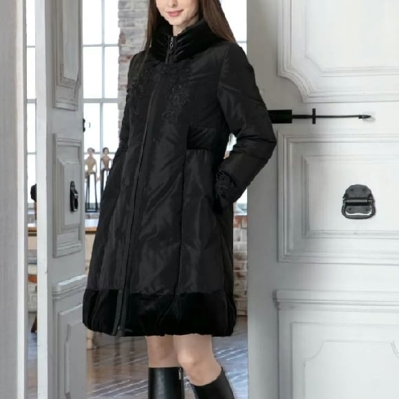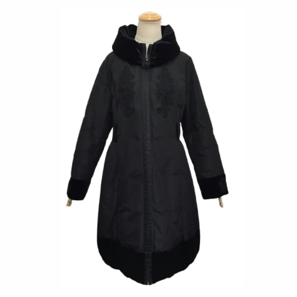 スーパービューティー ダウンコート レース使い ベロア切替 2528009 ブラック 2025年秋冬 オーラボー Super Beauty 大人かわいい服 大人スタイル キレイメ レディース アパレル 女性 M L LL 30代 40代 50代 60代