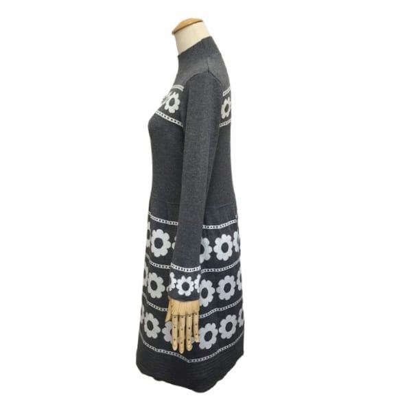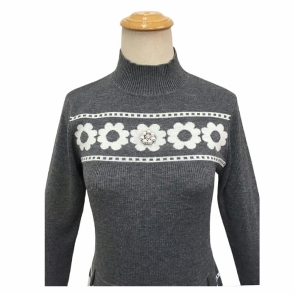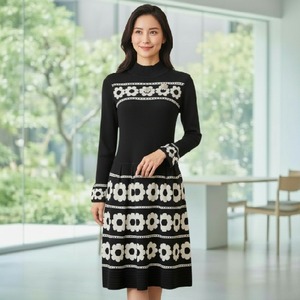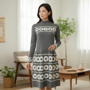 花柄ジャガード ハイネックニットワンピース。