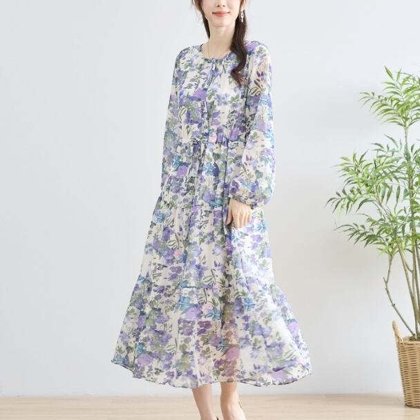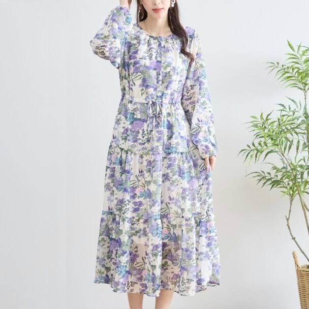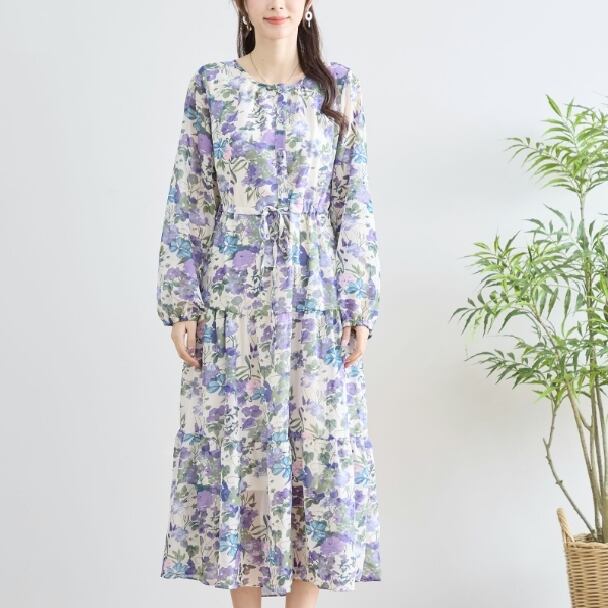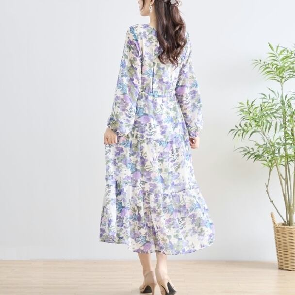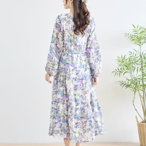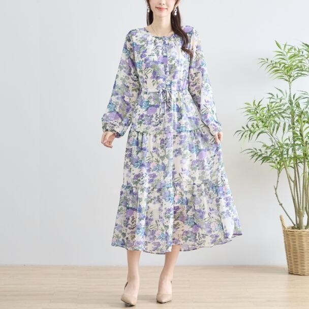 TRUBE フェミニン花柄 ロングワンピース N82-167 fmsd アイボリー レディース 長袖 デイリーファッション 大人フェミニン 大人可愛い 普段着 ミセス おしゃれ着 30代 40代 50代 60代