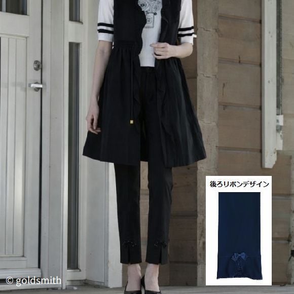 スーパービューティー ストレッチパンツ 裾後ろリボン レース使い ウエスト総ゴム きれいめ 美脚 ミセス レディース 2614001 ブラック 2026年春夏 オーラボー Super Beauty 上品 30代 40代 50代 60代