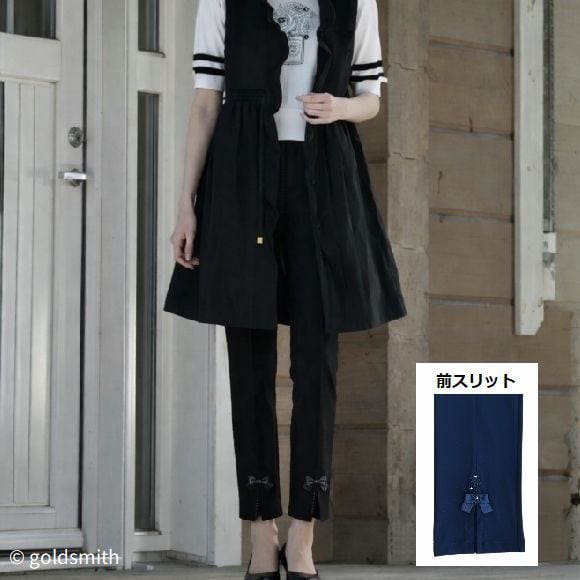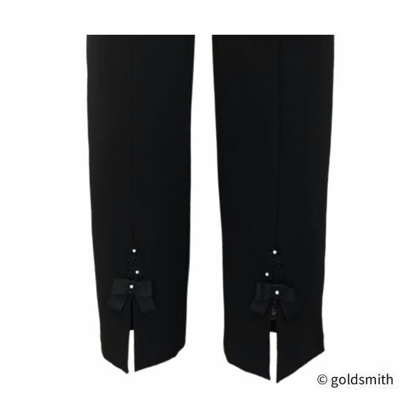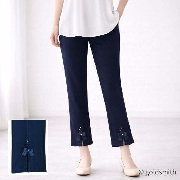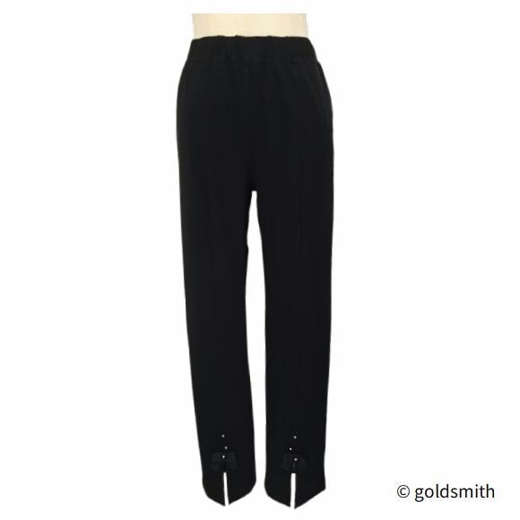 スーパービューティー ストレッチパンツ 裾前スリット リボン付き ウエスト総ゴム きれいめ 美脚 ミセス レディース 2614002 ブラック 2026年春夏 オーラボー Super Beauty 上品 30代 40代 50代 60代