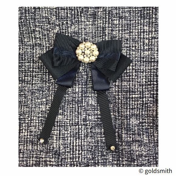 胸元には リボン×ビジュー をあしらい、