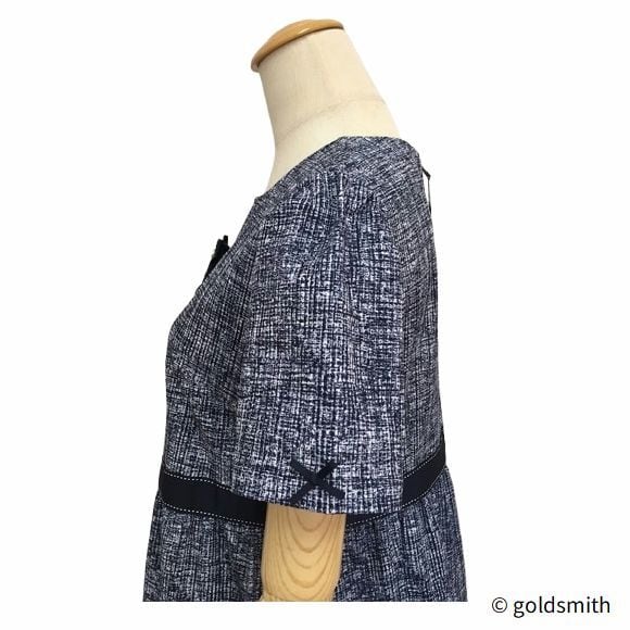 スーパービューティー ワンピース ビジューリボン付き ツイード調 ストレッチ上品 クラシカル 半袖 2616013 ネイビー 2026年春夏 オーラボー Super Beauty レディース 30代 40代 50代 60代