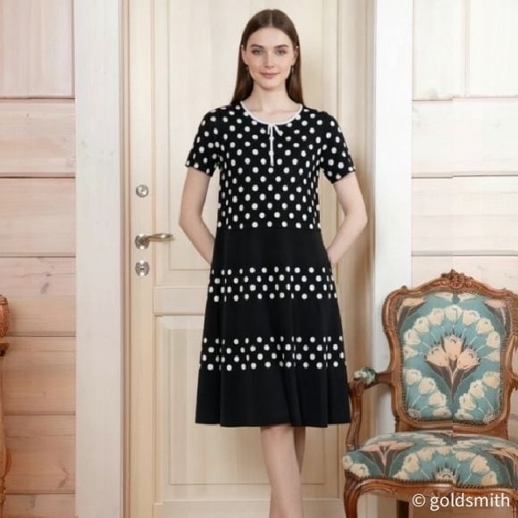 水玉柄のニットワンピースです。