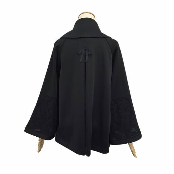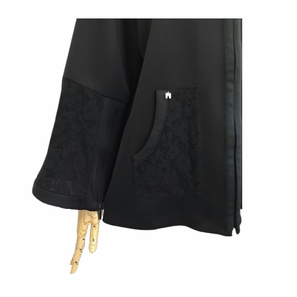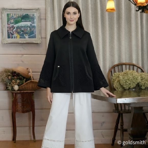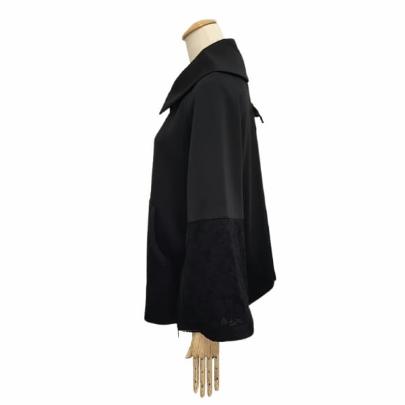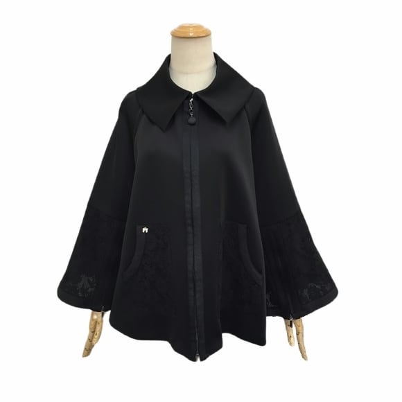 スーパービューティー ジップアップジャケット 袖フレアー レースデザインダンボールニット エレガント 大人上品アウター 2617001 ブラック 2026年春夏 オーラボー Super Beauty 上品 30代 40代 50代 60代
