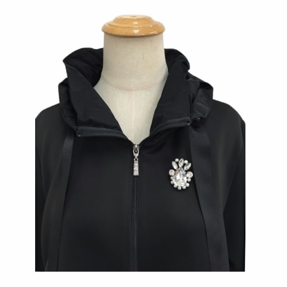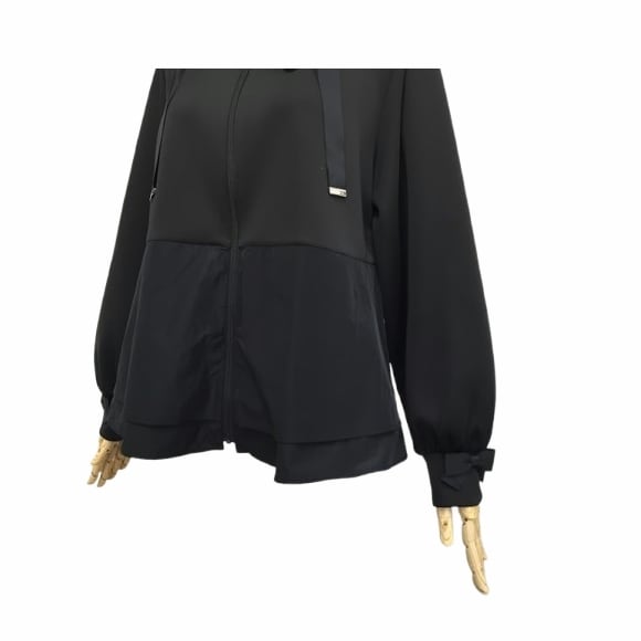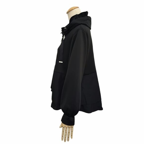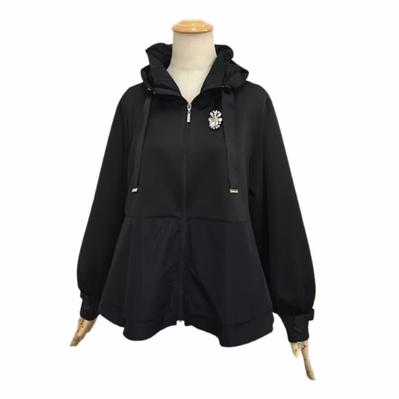 スーパービューティー ジャケット ダンボールニット タフタ切替 衿フリル ビジュー 大人エレガンス 2617002 ブラック 2026年春夏 オーラボー Super Beauty 上品 30代 40代 50代 60代