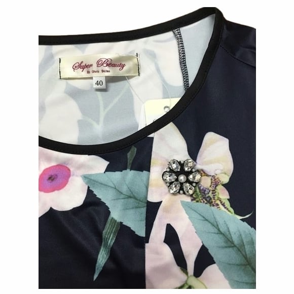 スーパービューティー ワンピース 大花プリント 七分袖 ストレッチ フレアデザイン カタログ掲載 2616005 ブラック 2026年春夏 オーラボー Super Beauty 上品 大人可愛い ミセス レディース