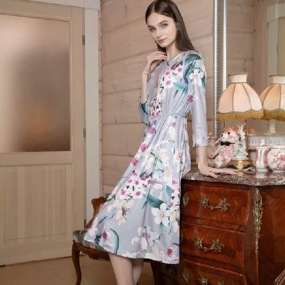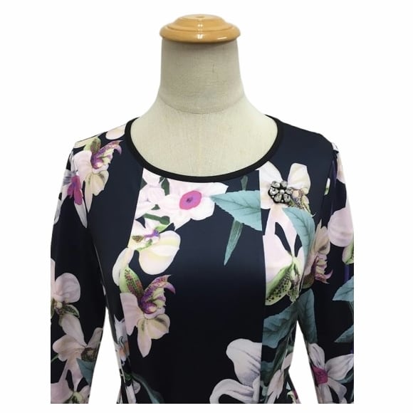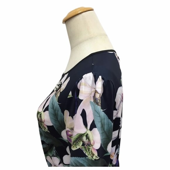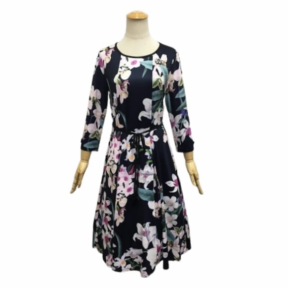 華やかさと上品さを兼ね備えたプリントワンピース。