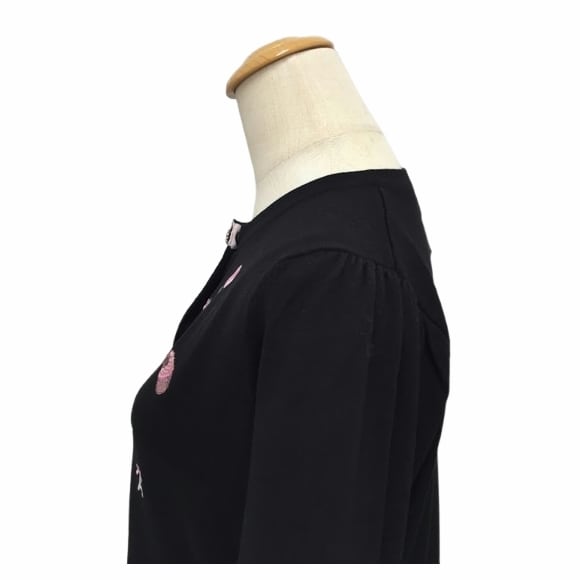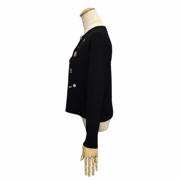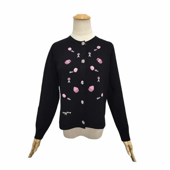 スーパービューティー カーディガン スイーツ エッフェル塔刺しゅう ニット ビジューボタン ベロア使い 2611013 ネイビー 2026年春夏 オーラボー Super Beauty 上品 30代 40代 50代 60代