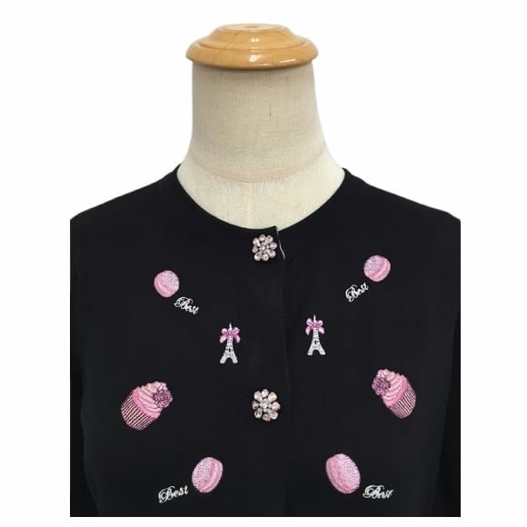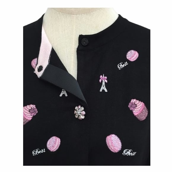 スイーツやエッフェル塔の刺しゅうが全体にあしらわれ、