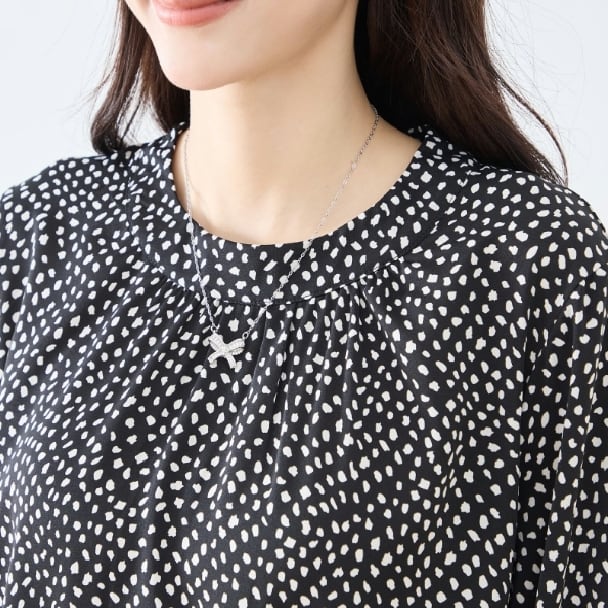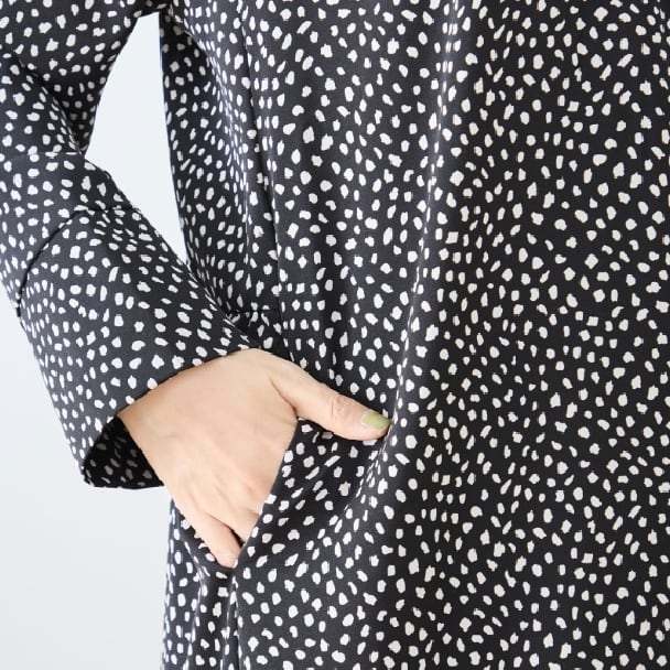 ランダム感のある変形ドット柄が甘くなりすぎず、