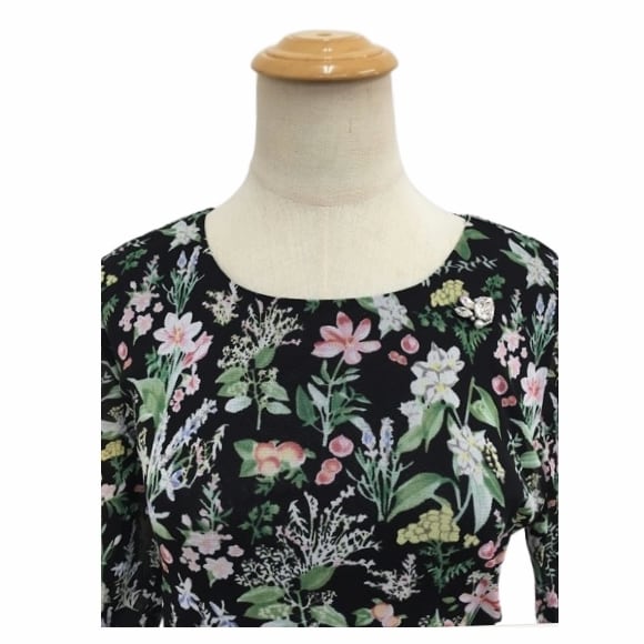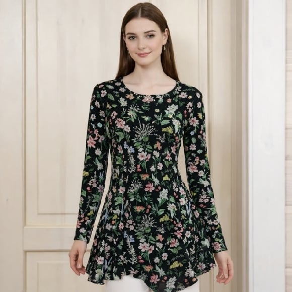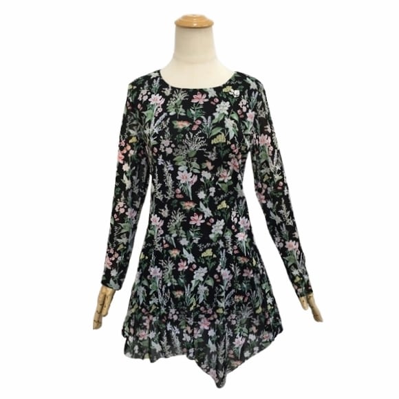 華やかな花柄プリントが目を引くチュニックです。