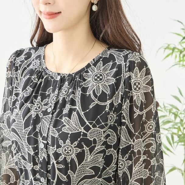繊細なラインタッチのフラワー柄を全面にあしらい、