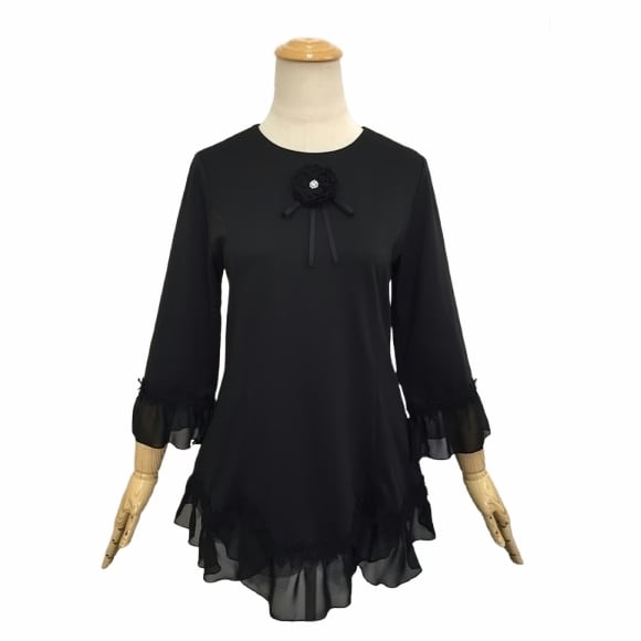 スーパービューティー チュニック 裾シフォン 胸元リボンブローチ付き 上品ブラック ブローチ取り外し可 2612005 2026年春夏 オーラボー Super Beauty レディース ミセス 大人可愛い