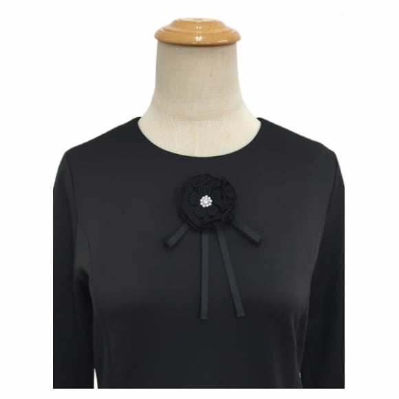 胸元にあしらわれたリボンブローチが、