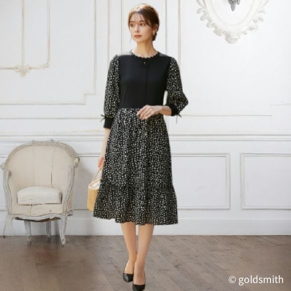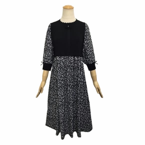 ドット柄切り替えドッキングワンピース。
