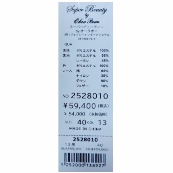 裏地:ポリエステル55%、レーヨン45%