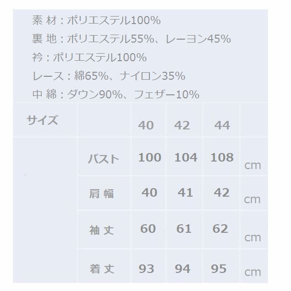 中綿:ダウン90%、フェザー10%