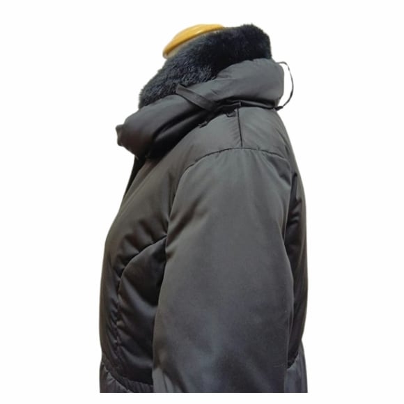 切替デザインのロングダウンコート。