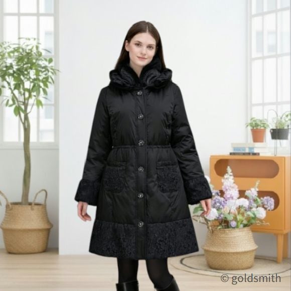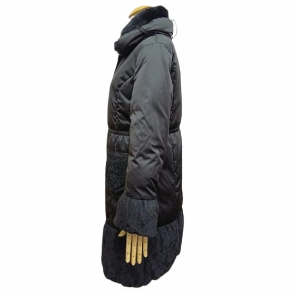 スーパービューティー 裾レース切替 ダウンコート レディース ロング|ボア襟取り外し可 花モチーフボタン エレガント 上品 軽量 防寒 2528010 ブラック 2025年秋冬 オーラボー Super Beauty 観劇 お出かけ 冬アウター