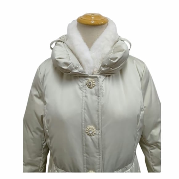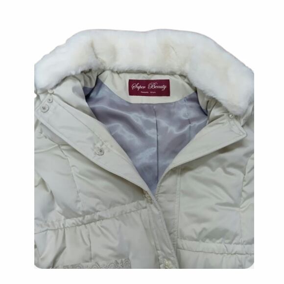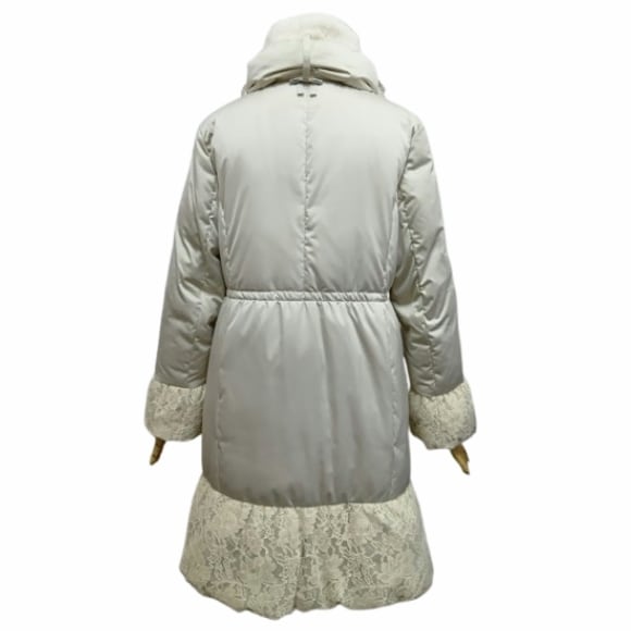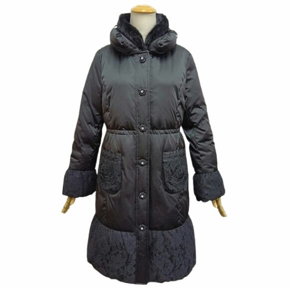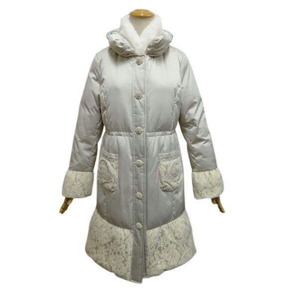 スーパービューティー 裾レース切替 ダウンコート レディース ロング|ボア襟取り外し可 花モチーフボタン エレガント 上品 軽量 防寒 2528010 ベージュ 2025年秋冬 オーラボー Super Beauty 観劇 お出かけ 冬アウター