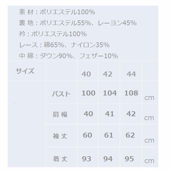 中綿:ダウン90%、フェザー10%