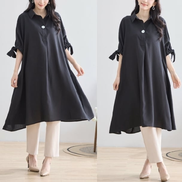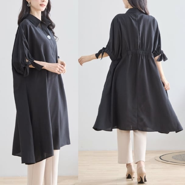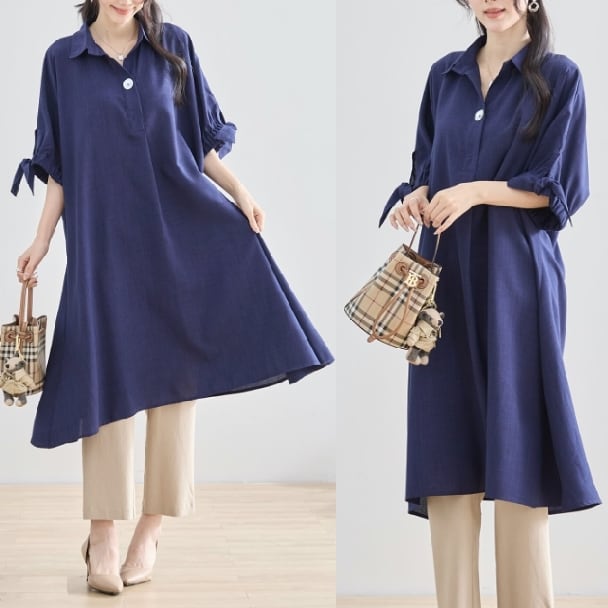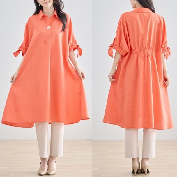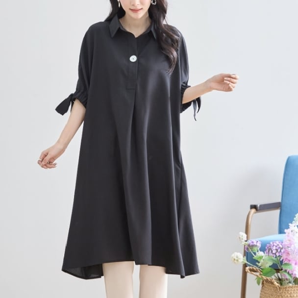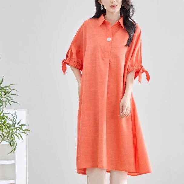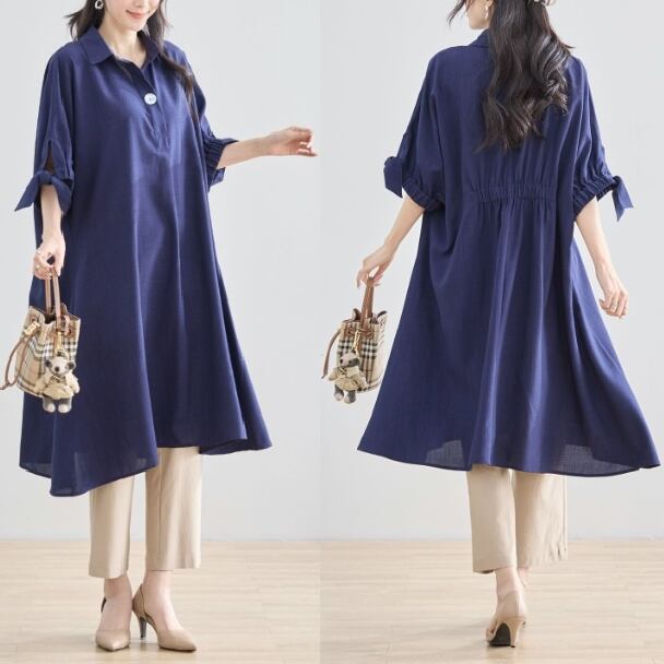 チュニックワンピース 1つボタン スキッパー N83-127 TRUBE 大人ナチュラル fmsd レディース 長袖 大人フェミニン 大人可愛い 普段着 ミセス