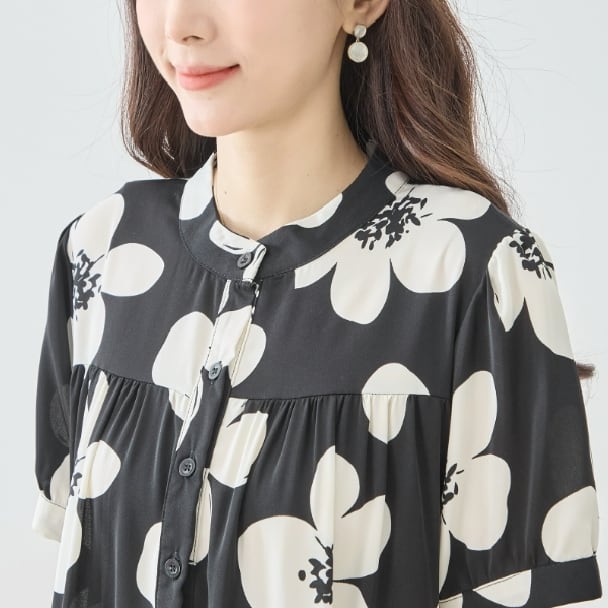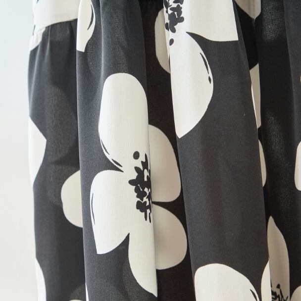 大胆なフラワープリントが目を引くモノトーン