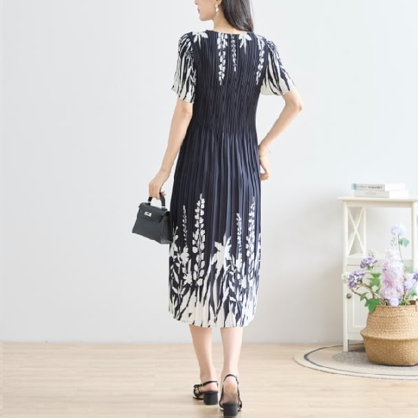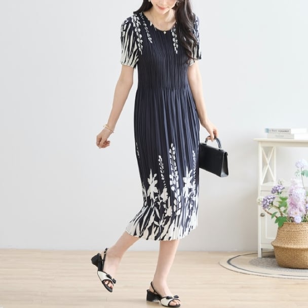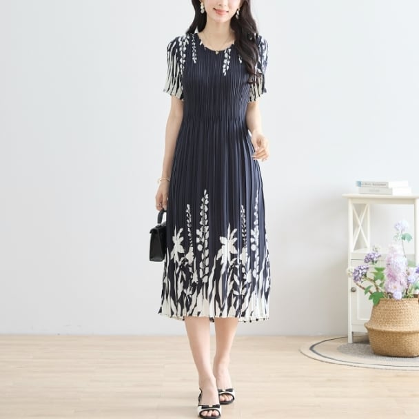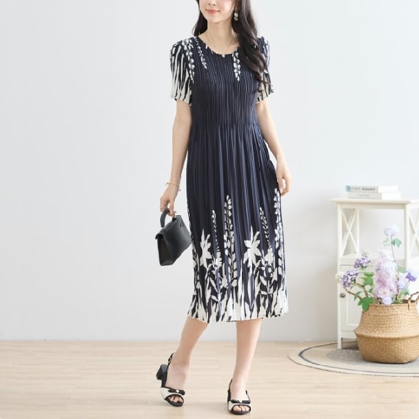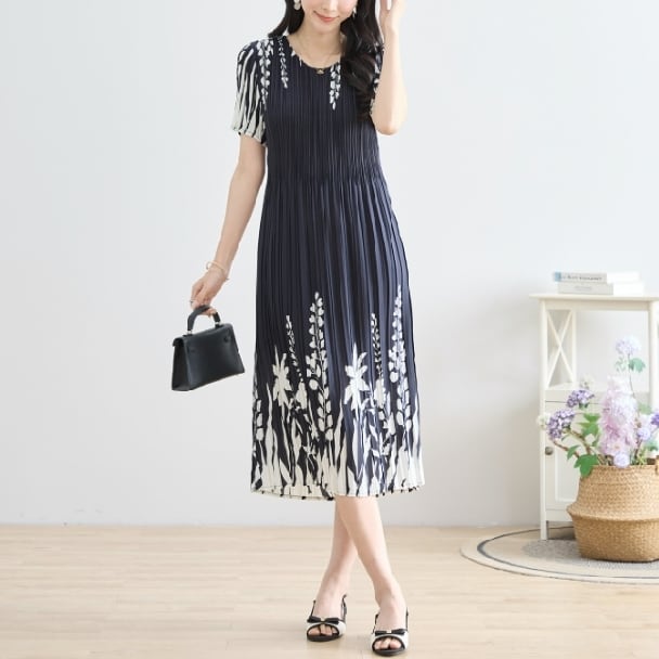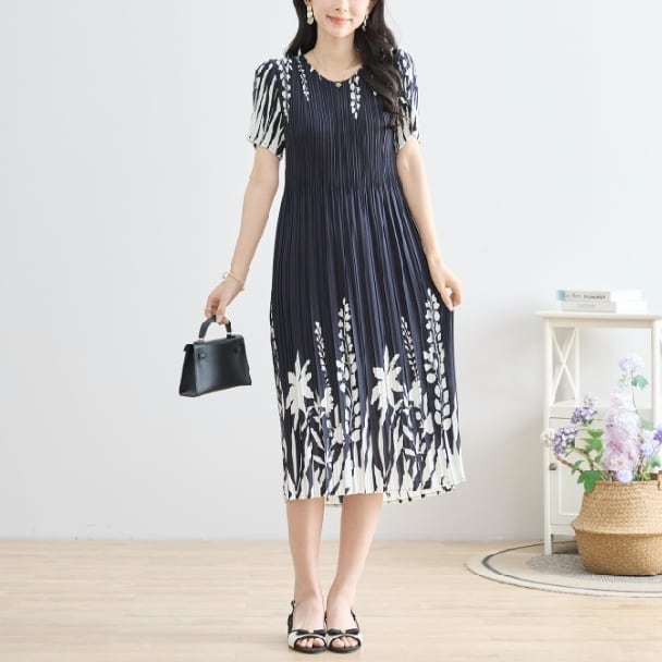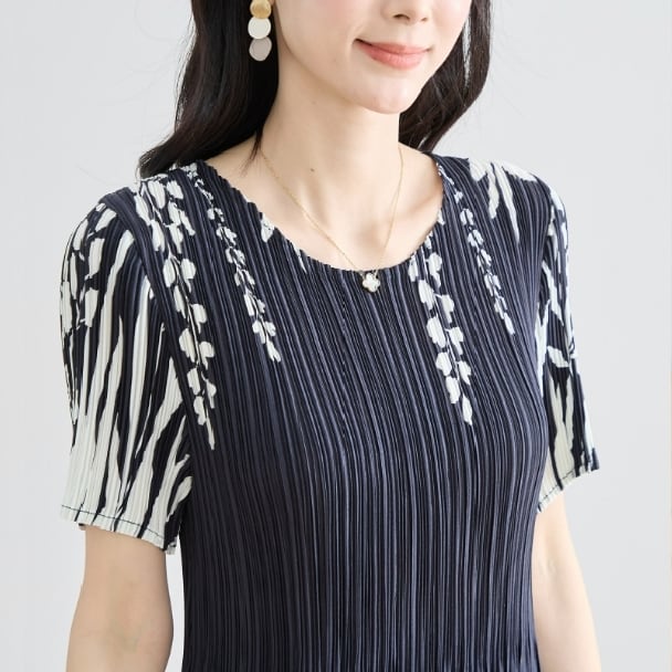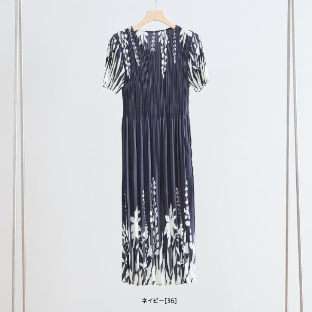 プリーツ ワンピース シックフローラル N82-244 TRUBE M L エレガント 上品 大人きれいめ fmsd レディース 半袖 大人フェミニン 大人可愛い